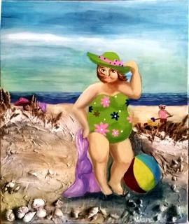 Dikke dames schilderijen in badpak