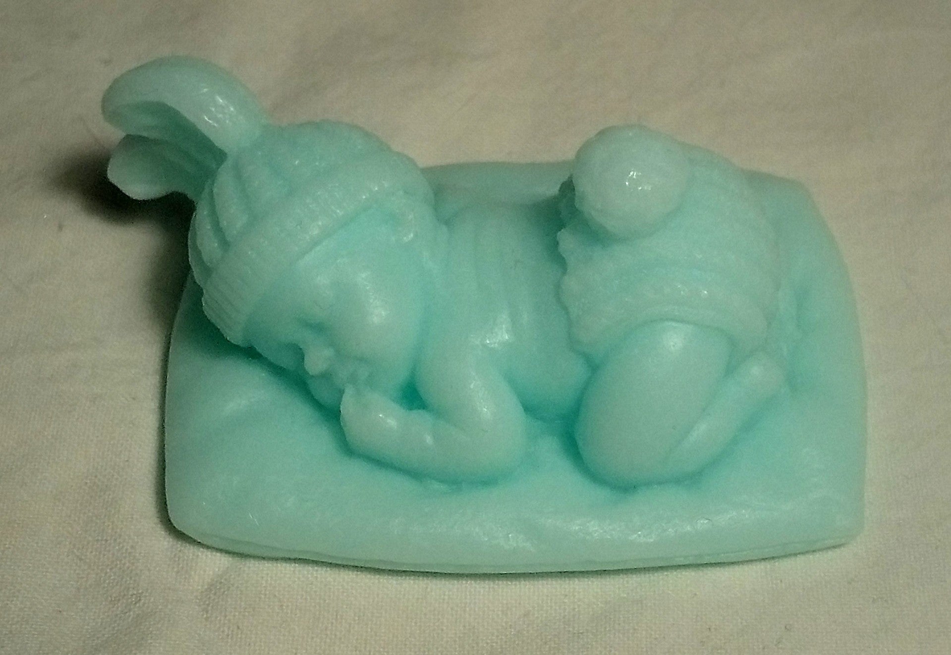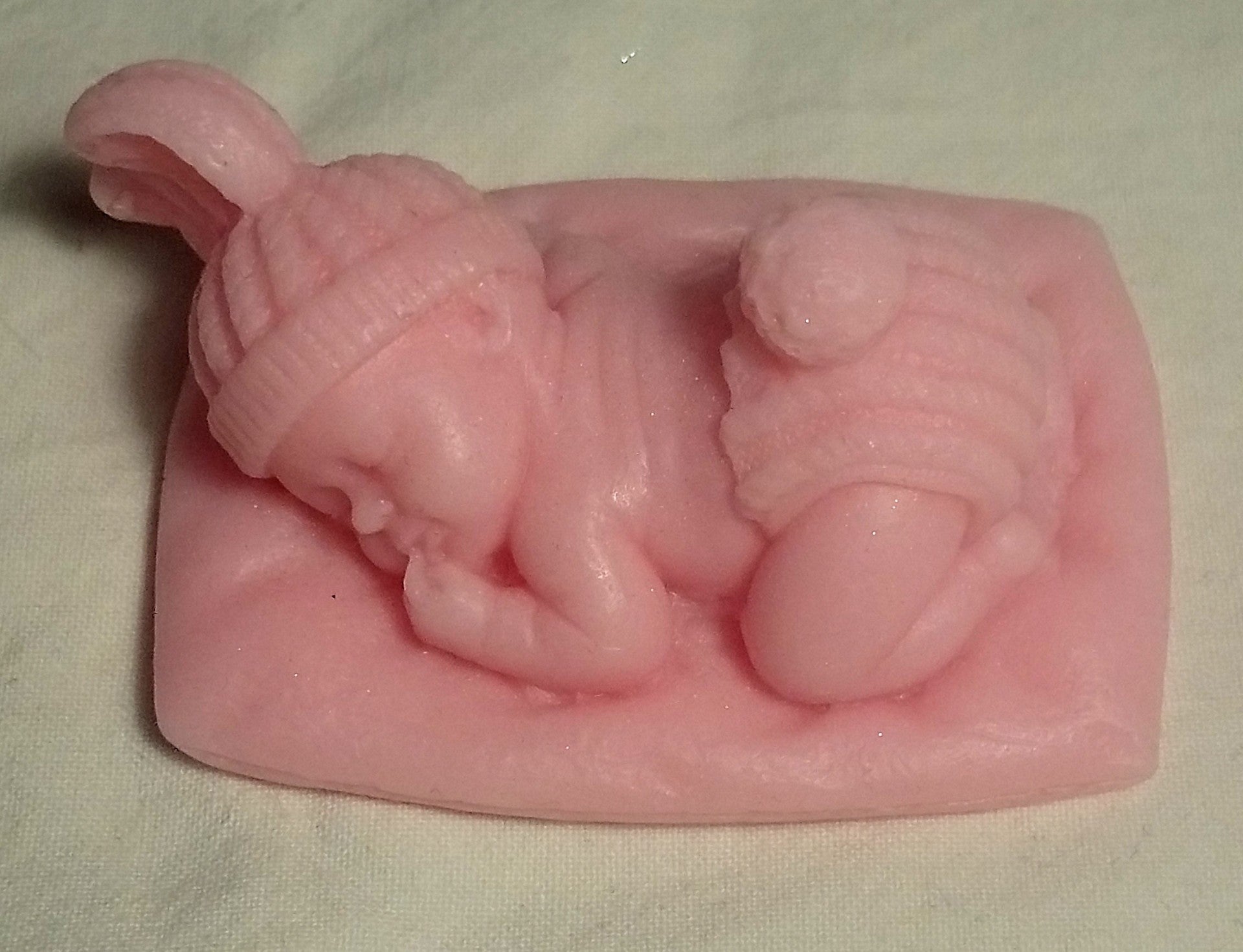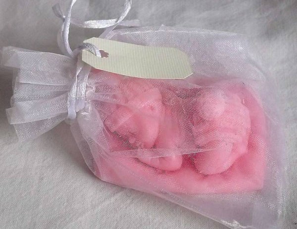 Schattig babyzeepje in organza zakje met kaartje om eigen boodschap toe te voegen.