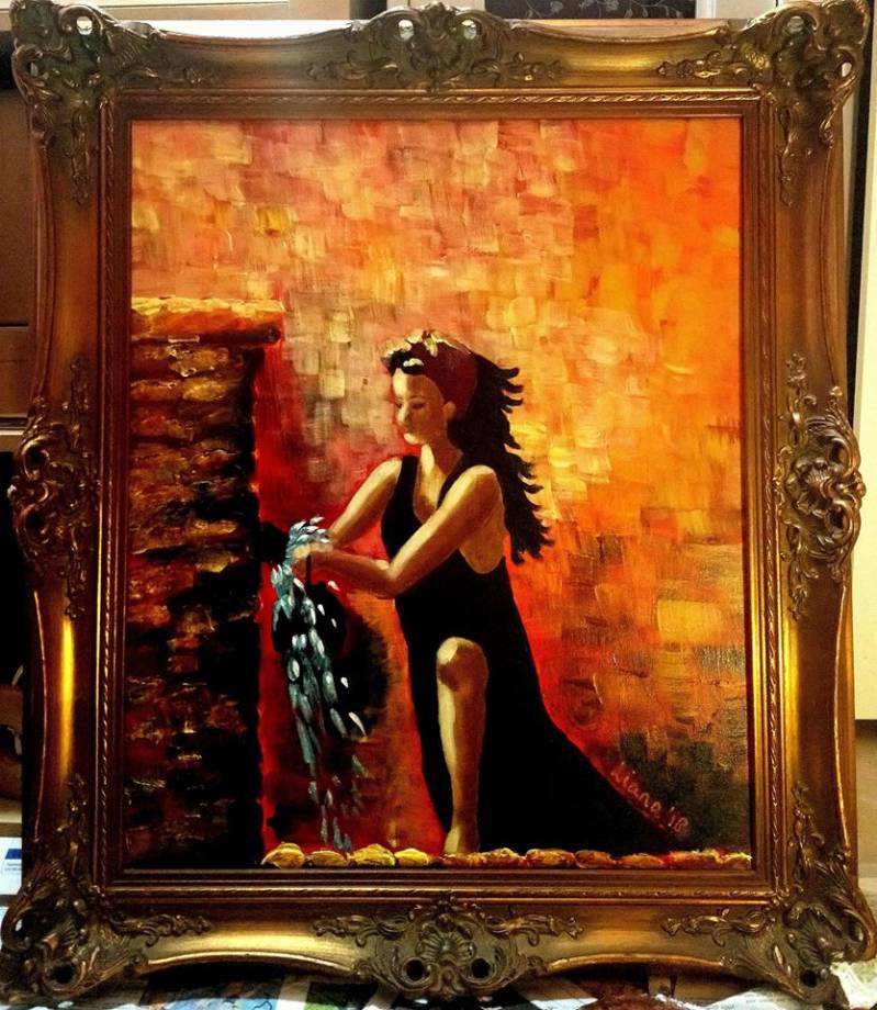 Spanish girl, 50 x 60, ingelijst. acrylverf en gemengde technieken.