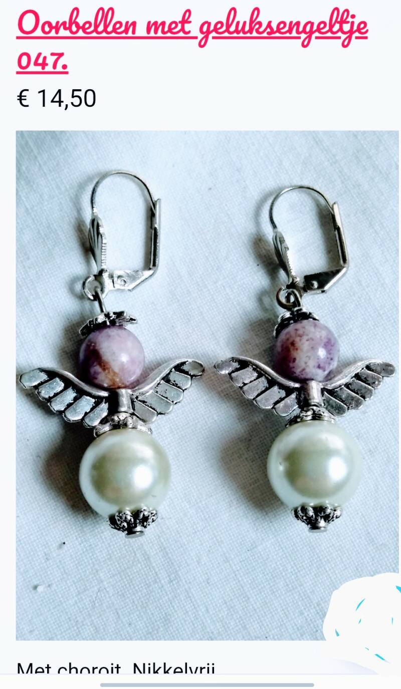 Als creatieve duizendpoot maak ik graag van alles wat ik mooi vind. Ik ben gek op sieraden met edelstenen. Draag ze zelf ook voor hun genezende werking. Onderaan de pagina staat de werking van de verschillende edelstenen. Alle sieraden worden online geleverd in een organza zakje. Ze zijn met liefde gemaakt in eigen atelier. De geluksengeltjes zijn 2 a 3 cm hoog.